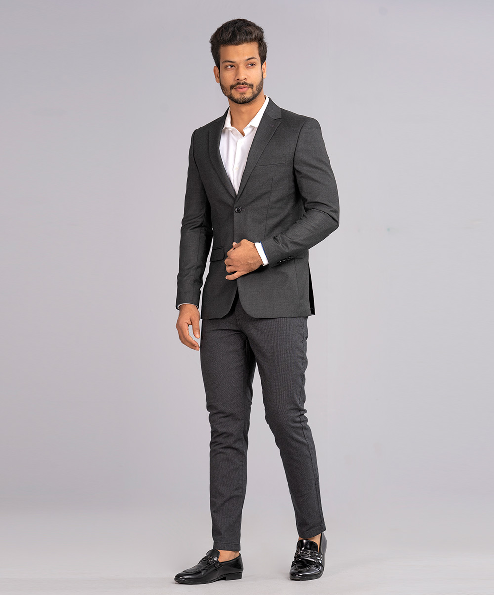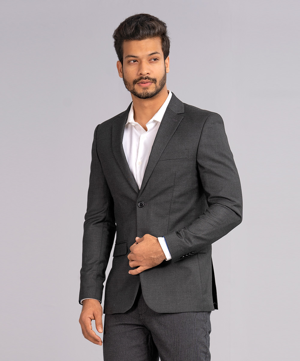 Charcoal Black Fitted Business Formal Blazer