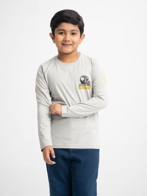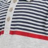Kid boy’s polo shirt in cotton pique fabric. Classic neck, long sleeves. Stripe print at the front.