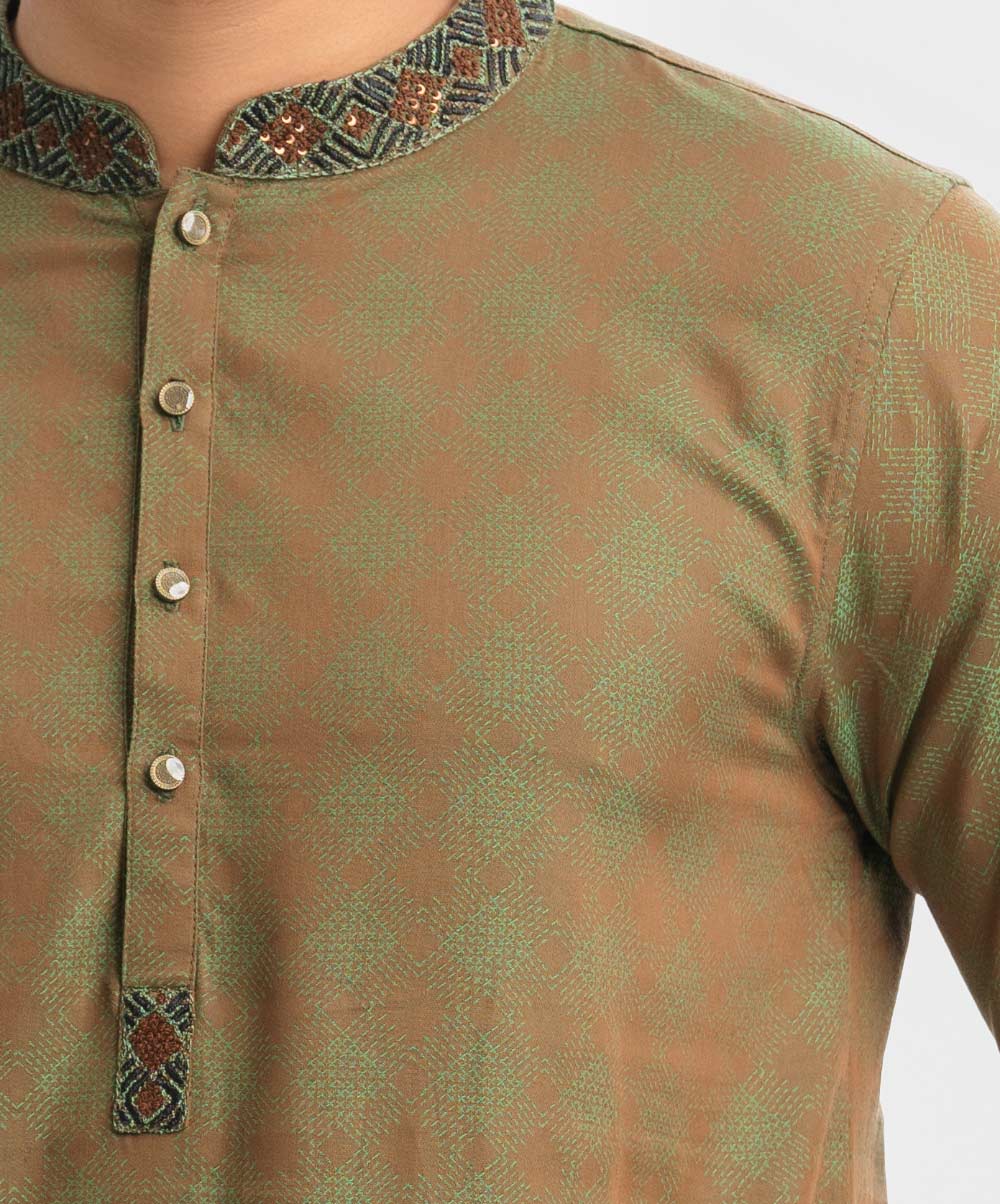 Green Jacquard Slim Fitted Panjabi