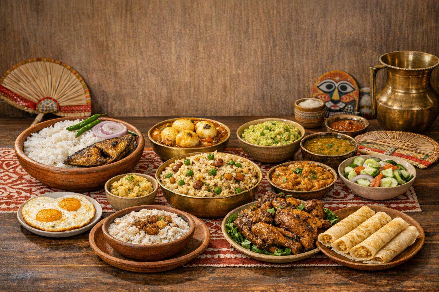 মেইন কোর্সে রাখতে পারেন মাছ ভাজা, হালকা মসলার চিকেন বা গরুর মাংস, যা খুব বেশি ভারী না হয়ে সবার জন্যই উপভোগ্য হবে। চাইলে ভাজি আইটেম যেমন বেগুন ভাজা, আলু ভাজা বা কাঁচা কলার চপও যোগ করতে পারেন, যা পুরো মেনুকে আরও বৈচিত্র্যময় করে তুলবে।