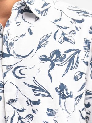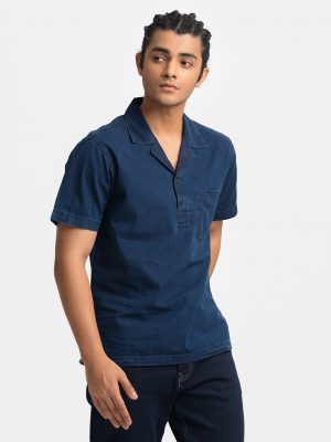 Blue Cotton-blend Long Sleeve Formal Shirt