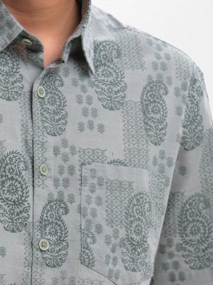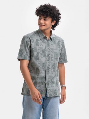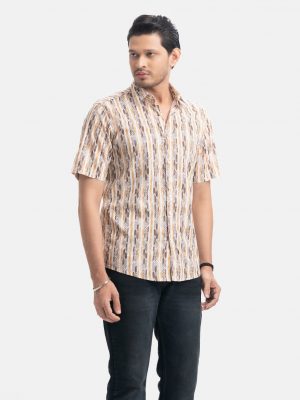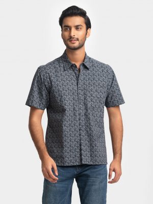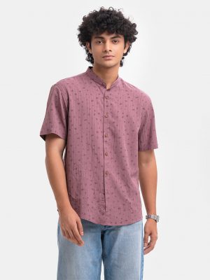 Purple Jacquard Rayon Short Sleeve Casual Shirt