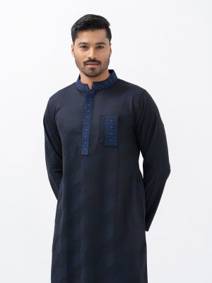 Black and Blue Fitted Jacquard Panjabi