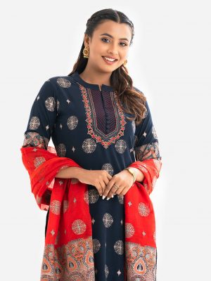 Navy Blue Viscose A-line Salwar Kameez