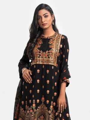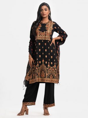 Black Viscose Straight Salwar Kameez