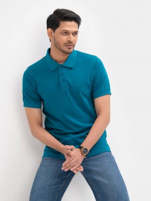 Blue Cotton Knit Polo