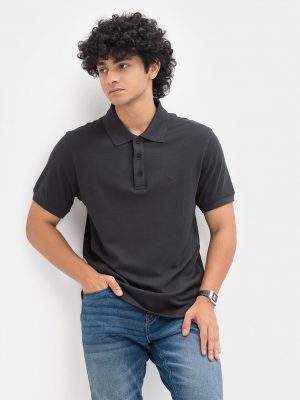 Black Cotton Short Sleeve Polo