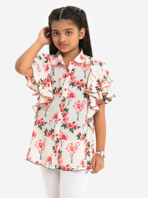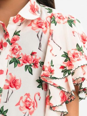 Multi-color Cotton Ruffle Sleeve Tunic