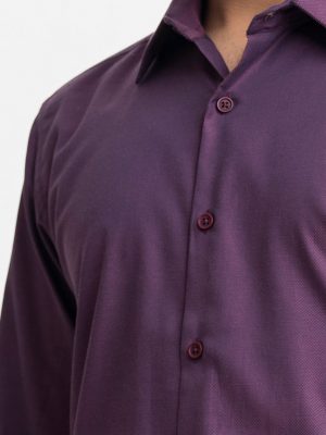 Purple Cotton Jacquard Long Sleeve Formal Shirt