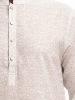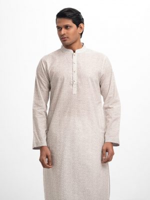 Beige Jacquard Cotton Semi Fit Panjabi