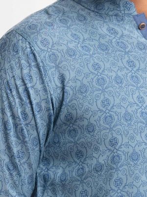 Blue Cotton Fitted Panjabi