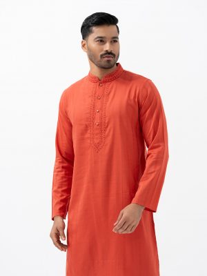 Orange Jacquard Fitted Panjabi