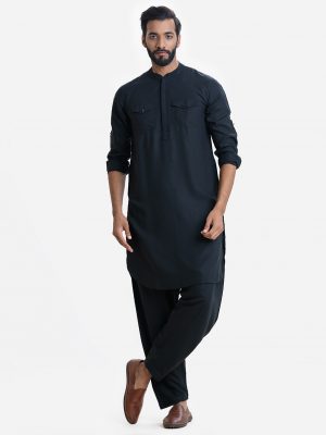 Navy Blue Viscose Kabli Panjabi Set