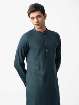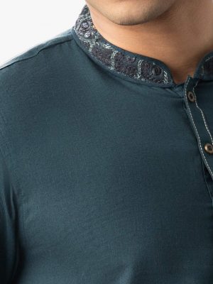 Blue Jacquard Cotton Semi Fitted Panjabi