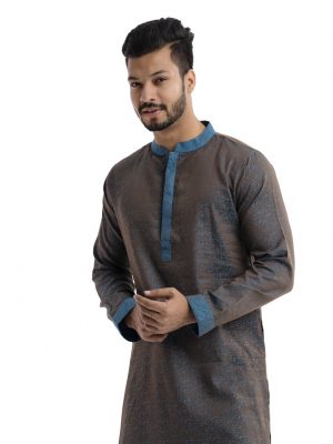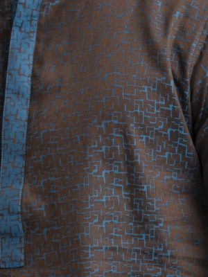 Brown Semi Fitted Jacquard Cotton Panjabi