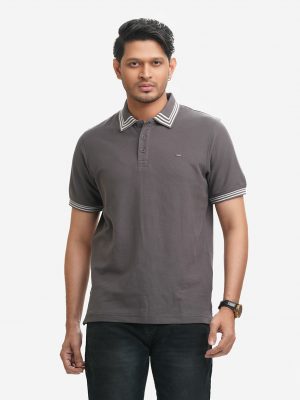 Gray Cotton Pique Polo