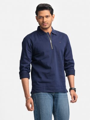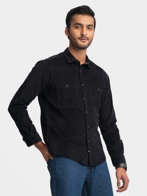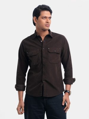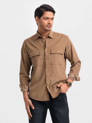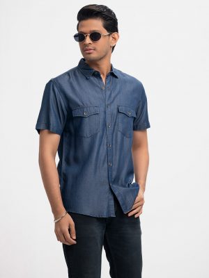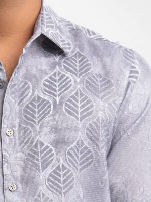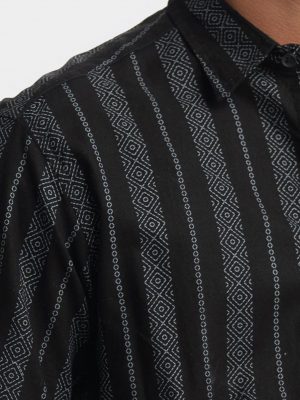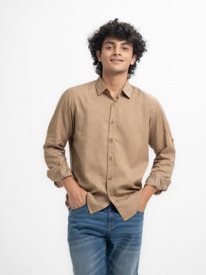 Olive Green Jacquard Short Sleeve Casual Shirt
