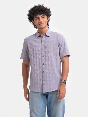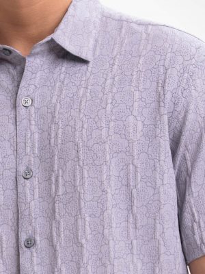 Purple Jacquard Rayon Short Sleeve Casual Shirt