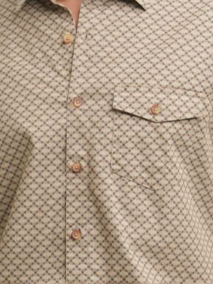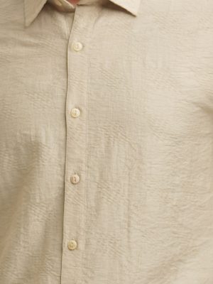 Beige Jacquard Long Sleeve Casual Shirt