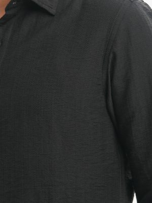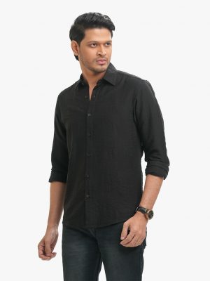 Black Cotton Long Sleeve Casual Shirt