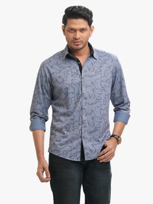 Blue Cotton Long Sleeve Casual Shirt