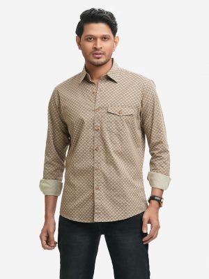 Brown Cotton Long Sleeve Casual Shirt