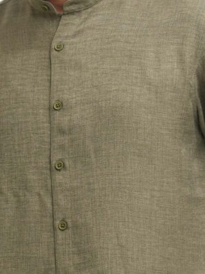 Green Linen Jacquard Business Casual Shirt