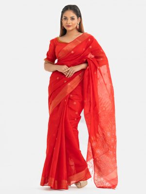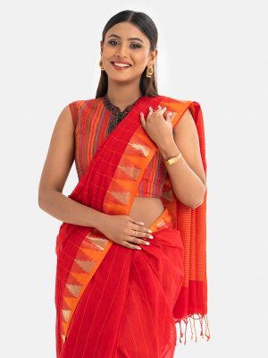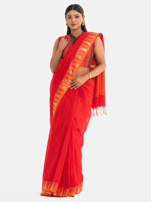 Orange Cotton Saree