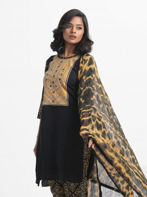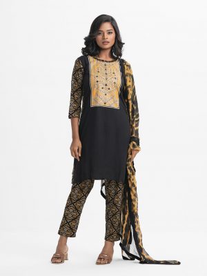 Black Viscose Straight Salwar Kameez