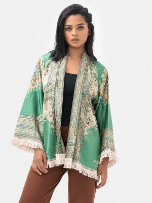 Green Satin Open Front Shrug