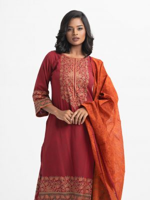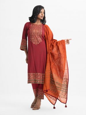 Red Viscose Straight Salwar Kameez