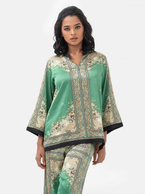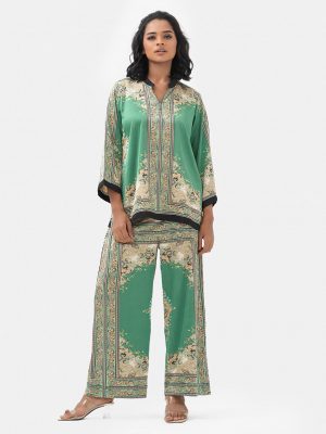 Green Satin Top Bottom Set