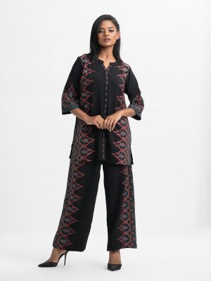 Black Stretchable Georgette Top Bottom Set