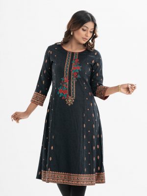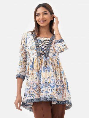 Multi-Color Blended Cotton Flared Style Long Tunic