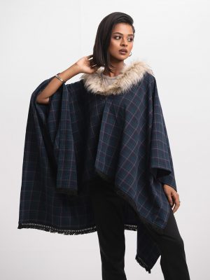 Multi-color Blended Check Poncho