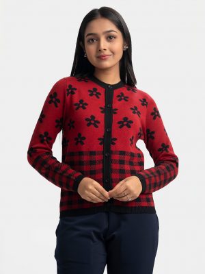 Red Viscose-blend Cardigan Sweater