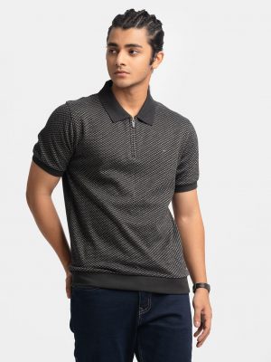 Black Cotton Knit Single Breasted Blazer