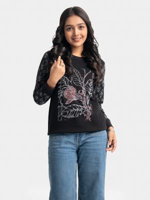 Black Terry Round Neck Sweatshirt