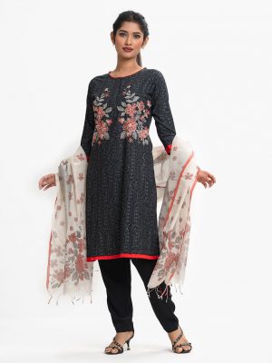 Black Viscose Straight Salwar Kameez