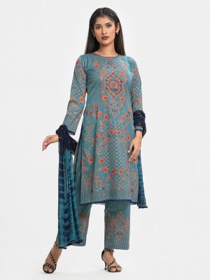 Teal Blue Viscose Printed Shawl