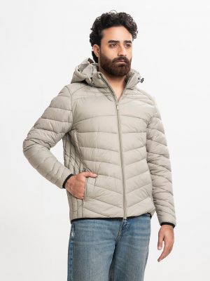 Gray Taffeta Hoodie Puffer Jacket
