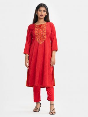 Red Georgette Embroidered Salwar Kameez