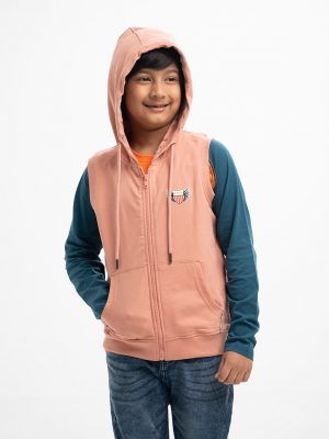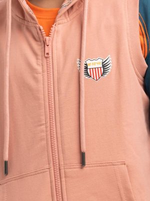 Pink Terry Sleeveless Hoodie Sweatshirt