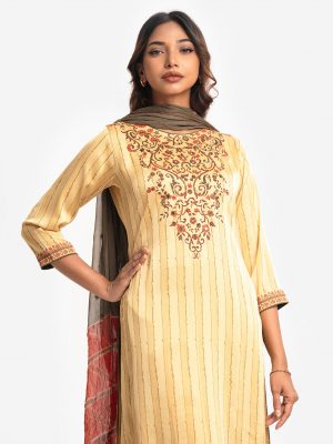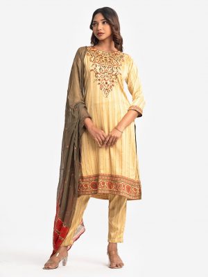 Khaki Viscose Straight Salwar Kameez