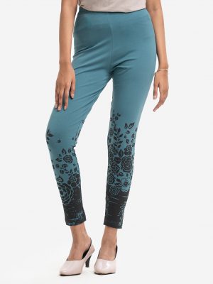 Teal Cotton Knit Leggings