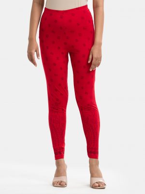 Red Cotton Knit Leggings