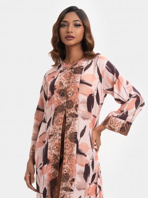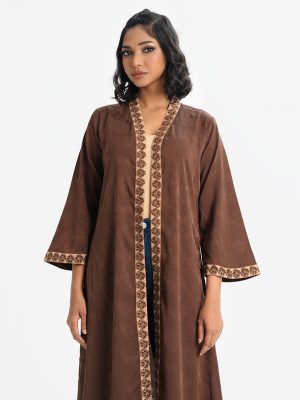 Brown Jacquard Abaya-style Shrug