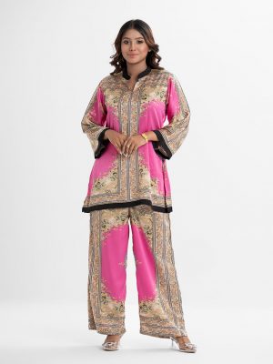 Pink Satin Top Bottom Set