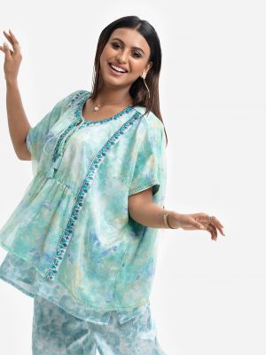 Mint Georgette Top Bottom Set