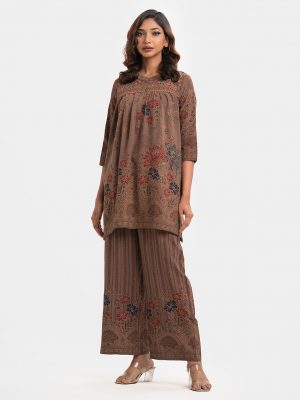 Brown Georgette Top Bottom Set